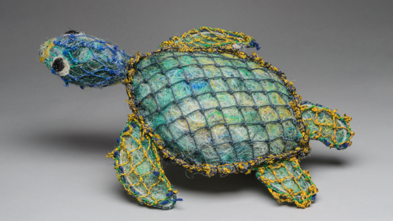 "This project is really meant to showcase the two juxtaposing forces that is Manmade and Nature, by having Manmade be represented by the fish nets and other ocean debris, and Nature being the fact it has been sculpted into the shape of a turtle.