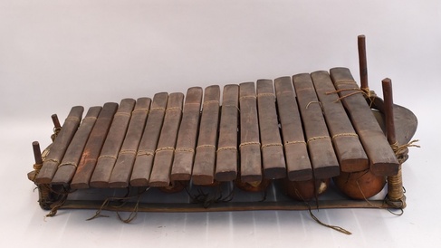 Usually when we work with objects, we start with the whole thing in front of us. In this case, I only had a small part that had become detached and found its way into an unprovenanced box, where the museum keeps objects without a clear place of origin. The part I found was a key from a balafon, a type of xylophone with gourd resonators that originates in West Africa. I decided to try and reunite the key with the rest of the instrument, so I checked all of the African xylophones in the collection for any that were missing pieces. I got out several that were missing keys, and tried slotting the key into each gap, Cinderella-style, until I found one that seemed to fit. I gave the keys a tap and the tone and pitching matched, so I knew I had found the right one!