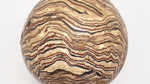 I was first drawn to this object because of its striking appearance of multi-coloured layers, which reminded me of the laminations seen in sedimentary rocks and banded minerals such as agate. I was further intrigued when I discovered how little we knew about the object in MAA’s records. When acquired by the museum in 1903, it was simply described as ‘a ball of a white vitreous substance, veined with black’. More recent records of the object told us that it was made sometime in the past 500 years, from an unidentified material, and for an unknown purpose. In other words, we knew next to nothing about the object, and for 120 years the ball remained an undiscovered curiosity within the collection.